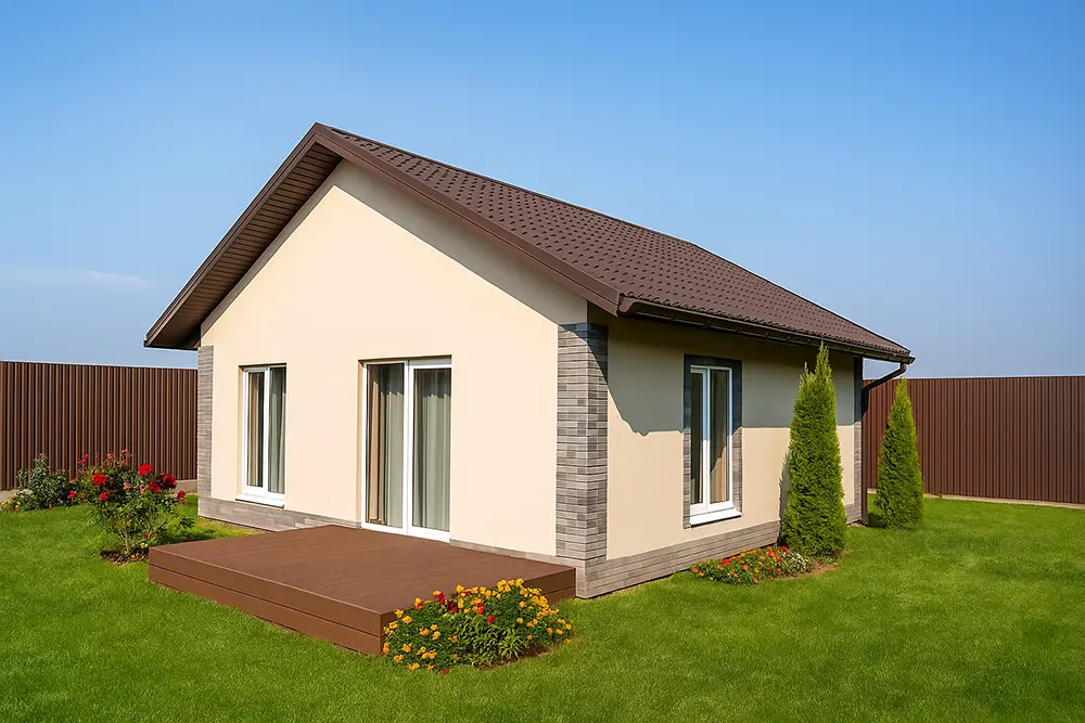 - Конструкция крыши — двух скатная фигурная из металлочерепицы утепленная.